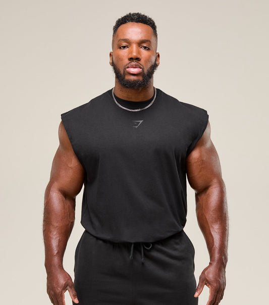 MONTH KANJ GRUNGE RAW CROPPED "TOMMY" MUSCLE TEE IN BLACK