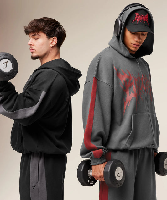 GYMSHARK X CARLOS BELCAST ZIP UP HOODIE - ONYX GREY